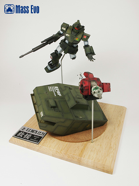 | 2007年的第一作,一直很喜欢MSV的设定,让高达的MS系谱更充实。这次制作的是MSV里最喜欢的狙击GM,场景的设定为0079年12月所罗门战役中一台负伤的RGM-79SC救援一台严重受损的GM。 |