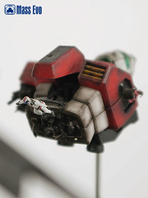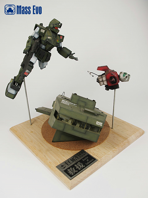 狙击GM使用HGUC的RGM-79为基础改造,以胶板为材料自制。GM的残骸使用HGUC的高达和GM的零件改造,增加了驾驶舱的细节和战损细节。联邦麦哲伦级的舰桥残骸用胶板自制,内部细节主要为胶板和过去模型的多余零件来制作。 |