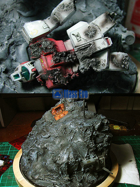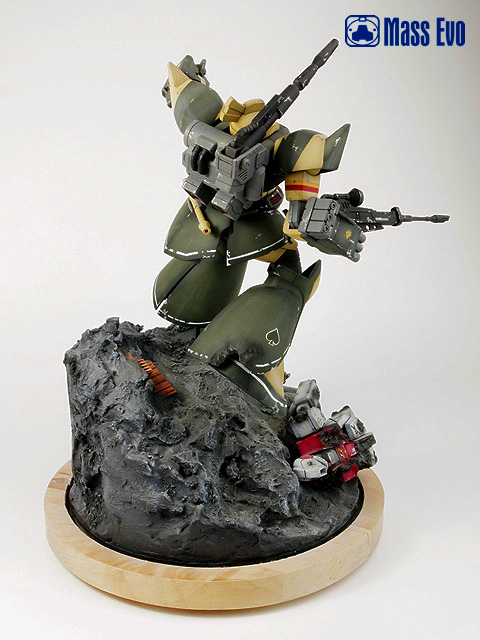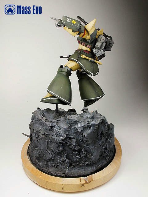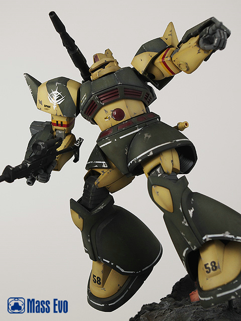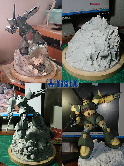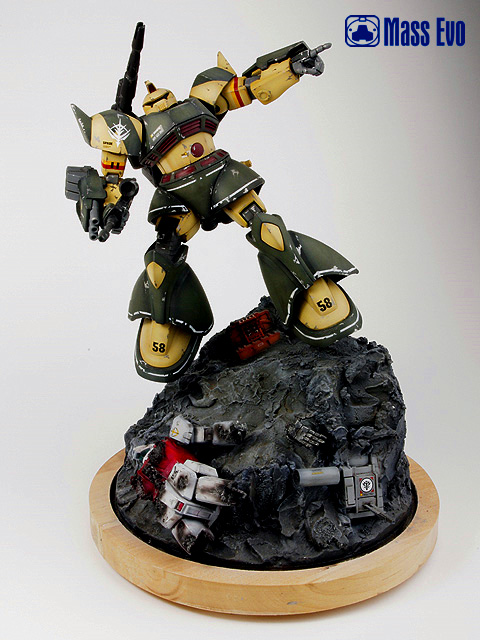 主体的MS-14C使用的HGUC套件,基本直做,山体使用石膏制成。用过去多余的零件做出陨石上的一些基地设施,残骸的GM采用HGUC的套件。(为什么我对GM如此的执着,笑)勇士的上色采用的是基迈拉队ACE——托马斯·库鲁兹的座机。 |