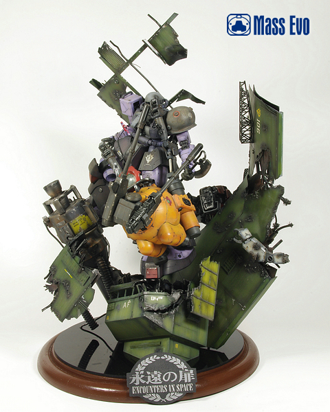 | 2000年的夏天,那年我第一次接触了08MS,这部与之前所看的高达风格完全不同的作品。写实的战争,小人物的故事,将我深深的吸引,而男女主角的命运纠缠起伏也成了那个暑假我的最为羁绊的事情。不过说起来,虽然制作模型多年,却很少涉及08MS的作品,也许是自己过于喜欢这部作品,所以一直在纠结自己无法完美表现这份心境而不敢轻易下手吧。这次带来的作品是于2011年完成的,其实也是本人第一个08MS主题的场景作品。当时的想法是希望能够通过场景的表现,来重现08MS整部作品中一些经典的剧情。而本作是男女主角在宇宙中的第一次相逢。 |