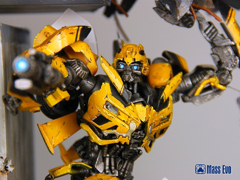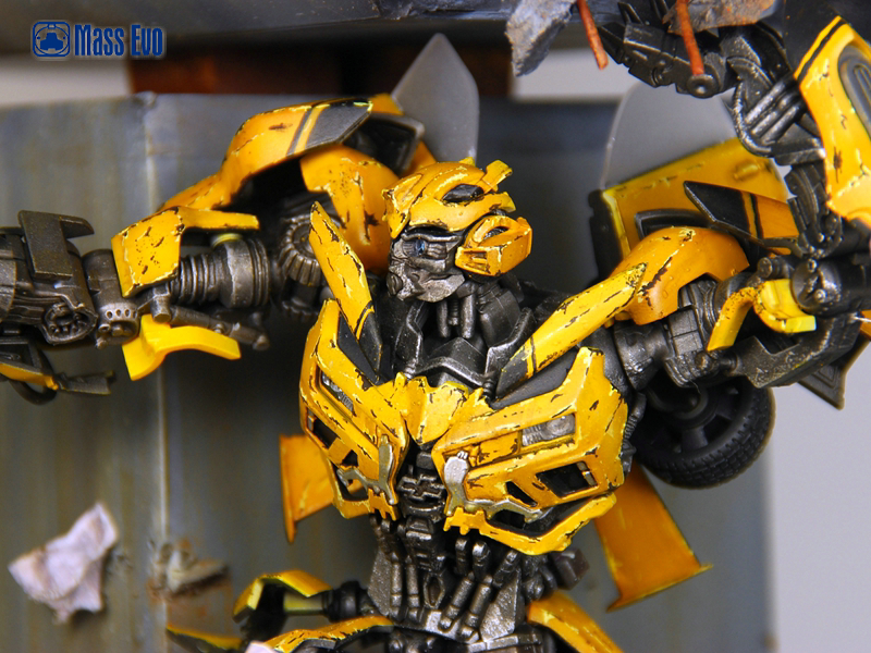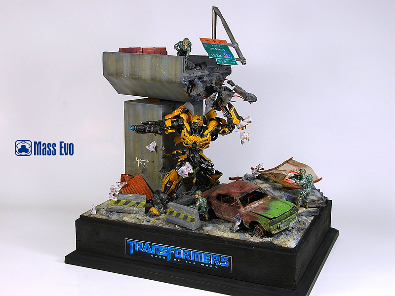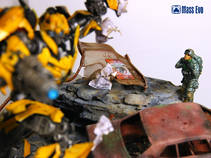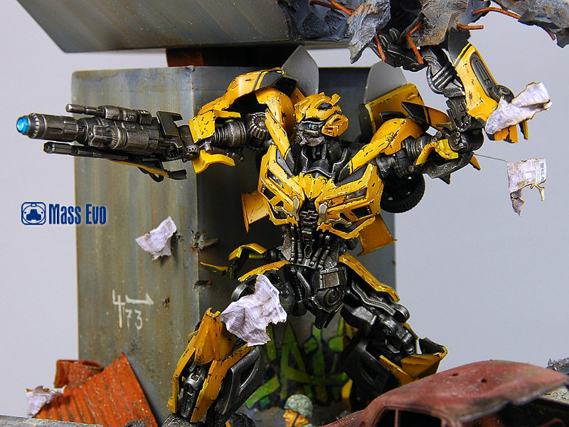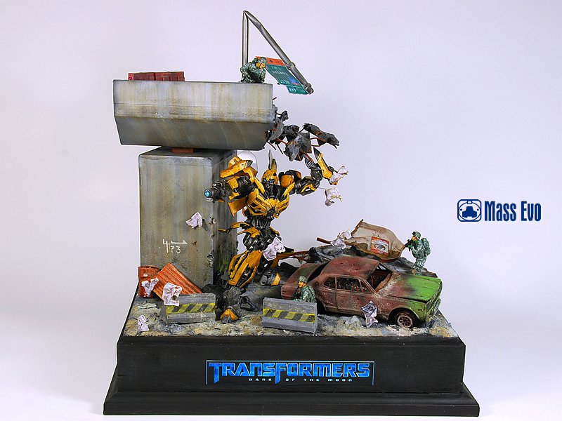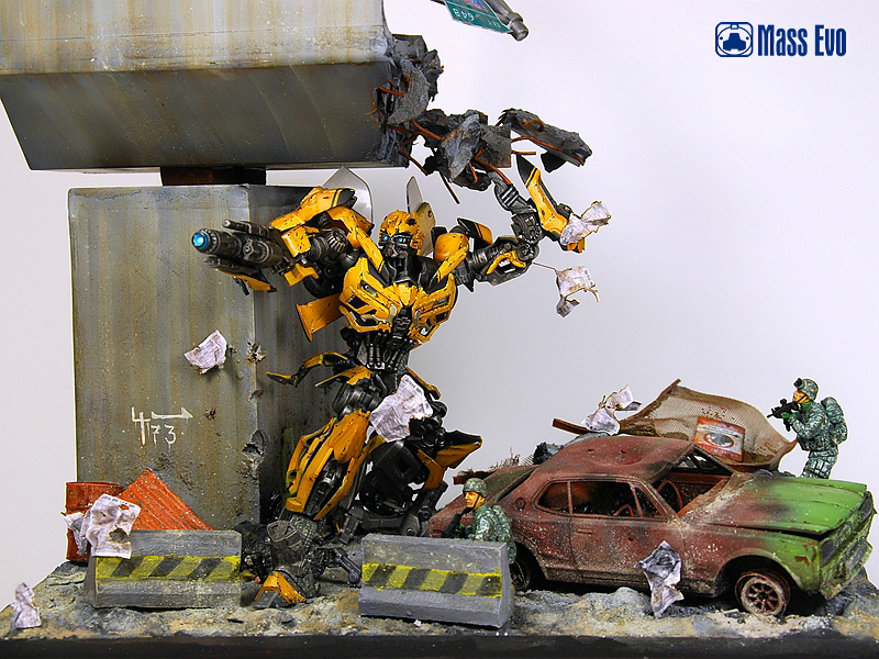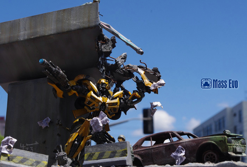 | 2007年,一部变形金刚真人版将封存近20年的变形金刚热潮再次卷起,瞬间擎天柱与大黄蜂成为了小朋友与大朋友口中的焦点。而随后的两部电影,更是将大黄蜂的形象深入人心,舍弃了当年保姆的造型,换上了战士的披挂,人气甚至追超擎天柱大哥。而本次的作品就是即2012年制作的擎天柱场景——《瞬弑》后的又一次变形金刚题材场景制作。制作灵感源于电影版第三部《变形金刚月黑之夜》汽车人与人类同仇敌忾的战斗画面。 |